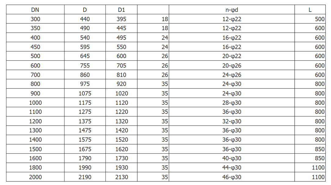 公稱通徑:DN300~2000